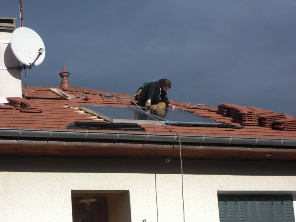 Ricci Entreprise Plomberie propose également d'installer vos panneaux panneaux solaires pour eau chaude sanitaire comme sur cette réalisation à Bourgoin Jallieu ou plus précisement à Demptézieu ou nous avons réalisé la pose de panneaux solaire thermique intégrés à la toiture alimentant un ballon d'eau chaude sanitaire de 300L de marque De Dietrich reliés par des tubes inox isolés Duo-Flex.